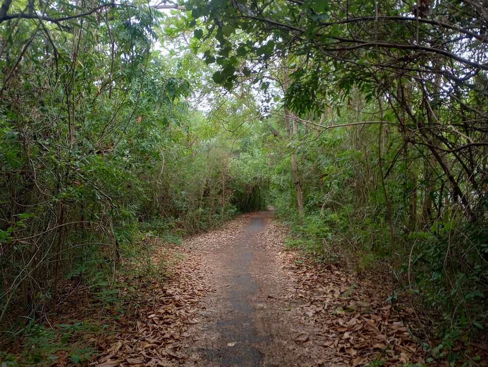 jungle die je alleen kunt bereiken over kleine betonnen paden waar ik met mijn fiets net op kon. Het