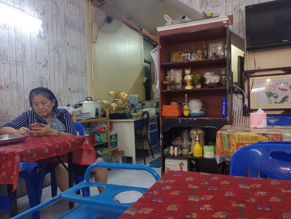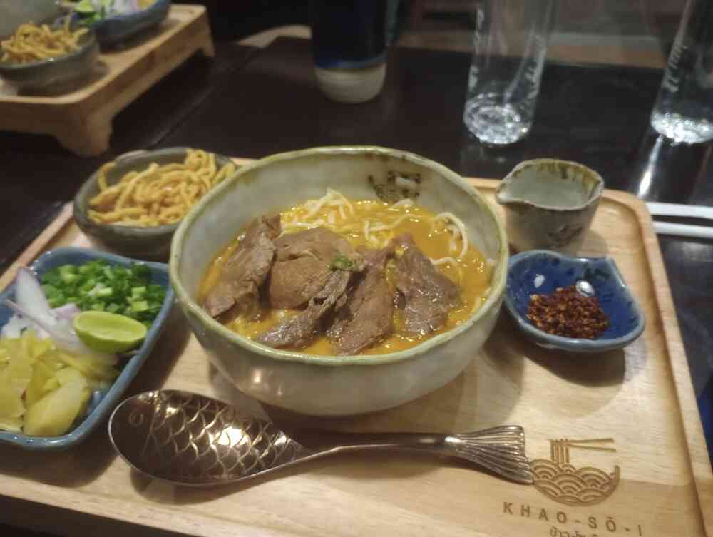 we aan in een restaurant genaamd Thong Smith, een plaats waar ze zogenoemde Boat Noodle serveren. Zie