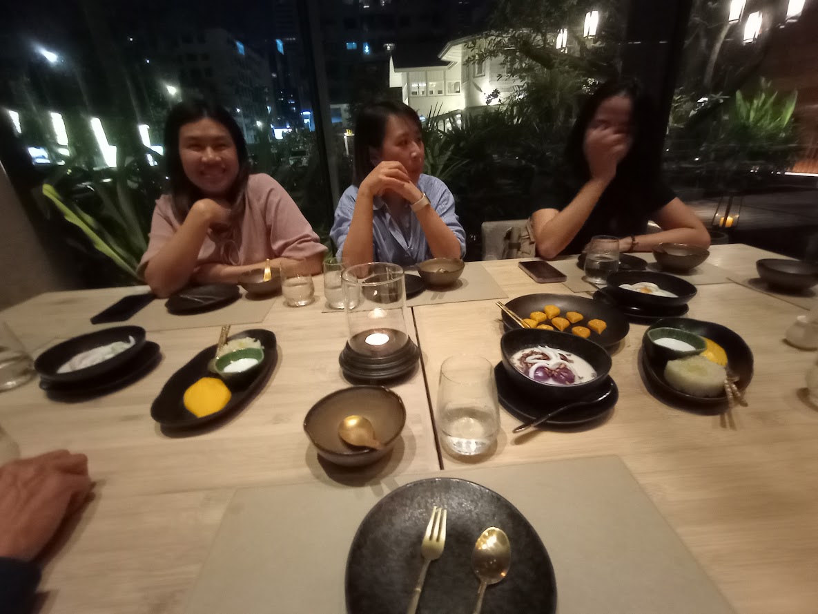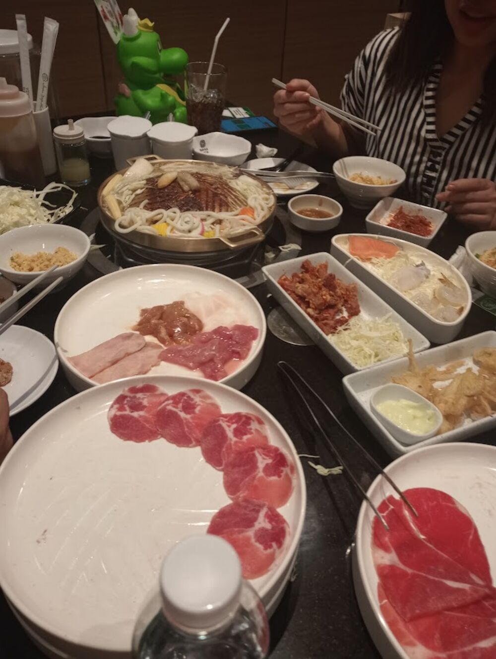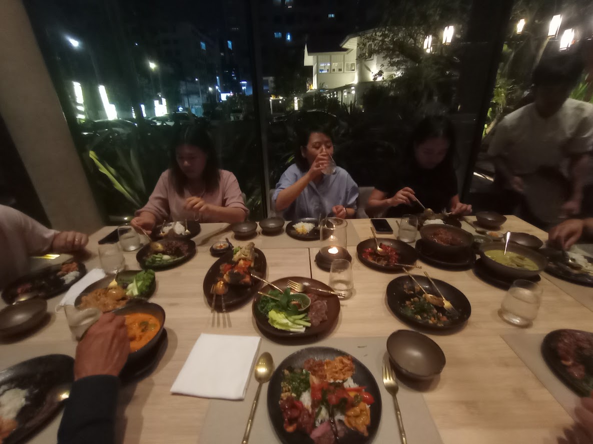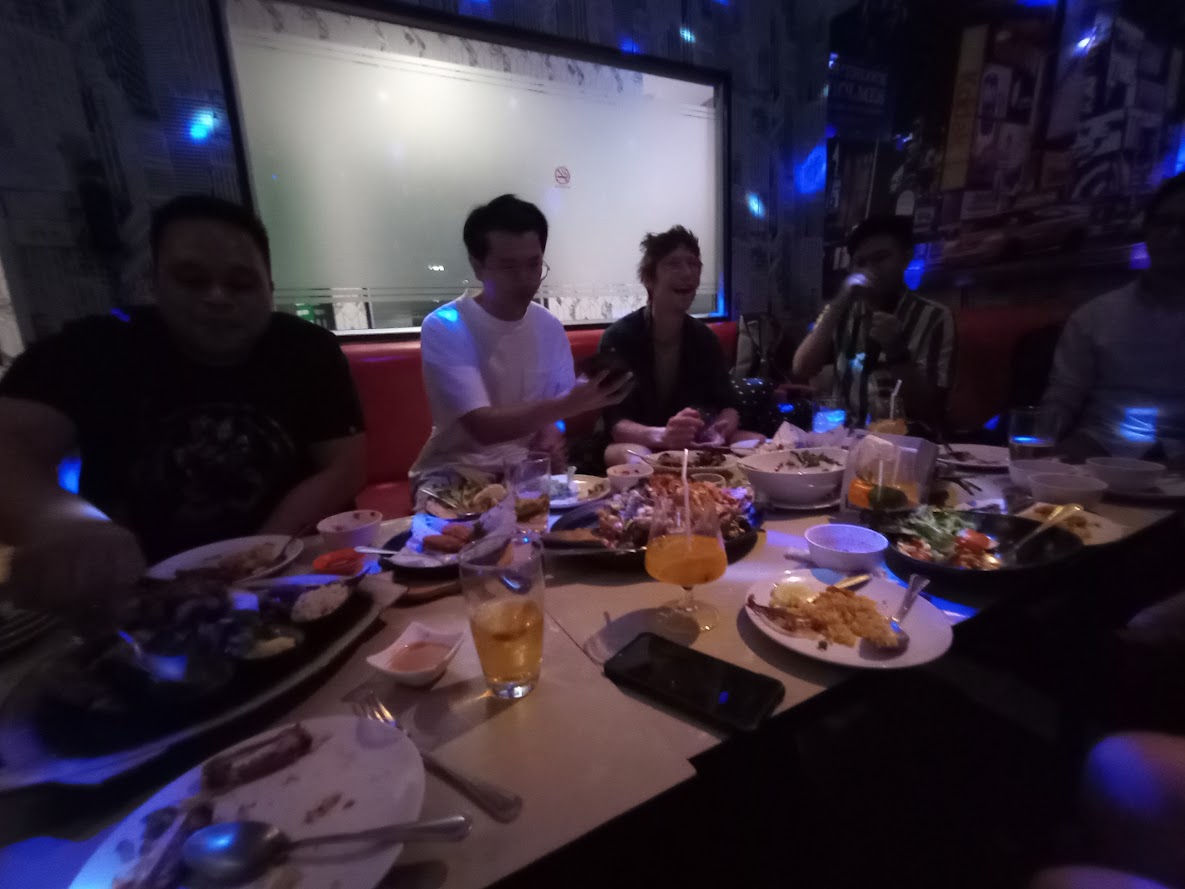 Het was nog wel leuk, die laatste week. De collega's hadden een avond karaoke georganiseerd. Zoals de meeste activiteiten hier is ook dat eigenlijk gewoon een smoes om lekker te eten, getuige daarvan de foto hieronder.