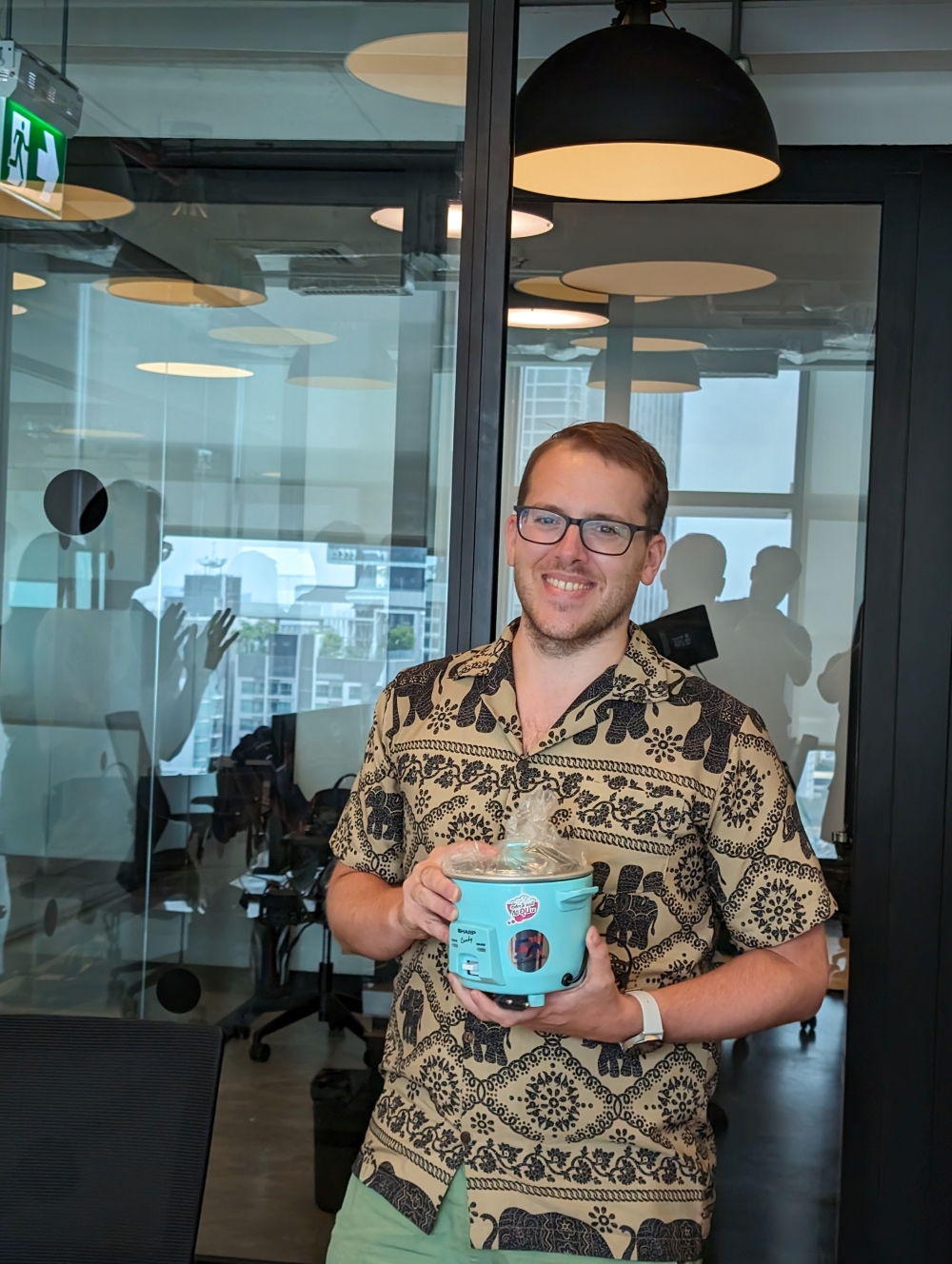 Maar het mooiste moment van de dag had plaats daarvoor. Om mij te bedanken voor mijn assistentie van de afgelopen maanden werd ik getrakteerd op een rijstkoker. De vraag of het een kleine rijstkoker is, of dat ik spectaculair gegroeid ben laat ik aan jullie over.