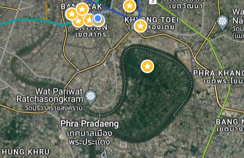 Bangkok. Dat groene gebied is een eiland in de stad met de naam Bang Kachao. Het is technisch gezien