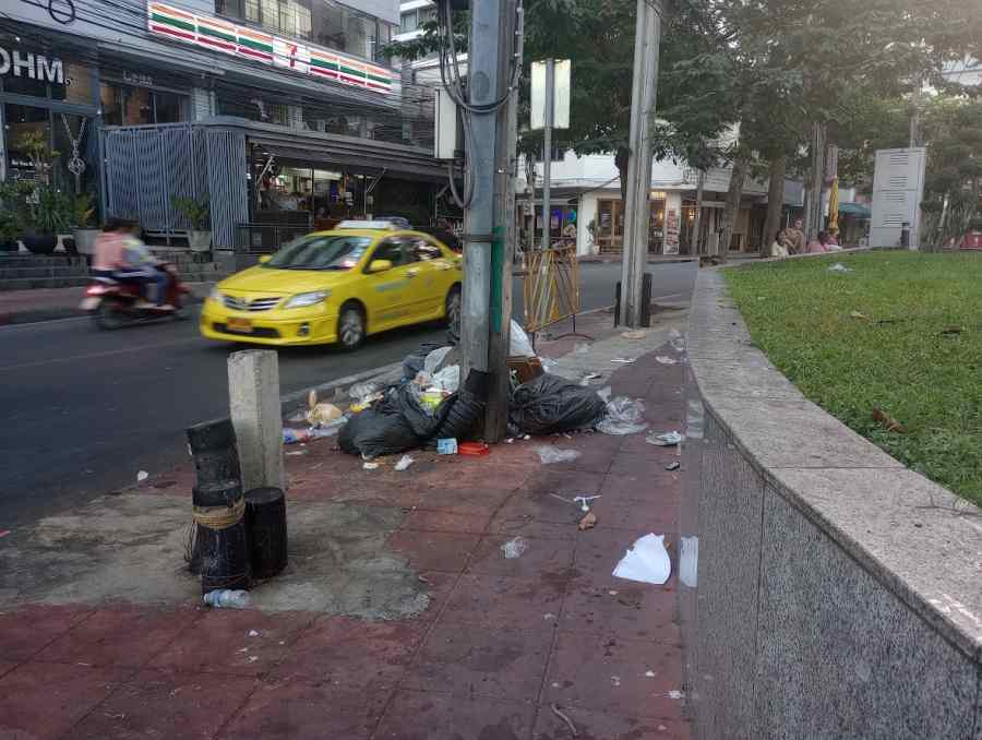 Om erin te komen toon ik een foto van hoe men hier de vuilniszakken